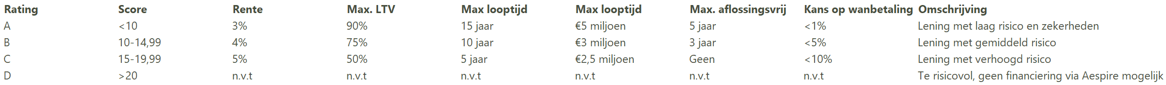 AESPIRE hanteert een gestructureerde methode voor het beoordelen van kredietwaardigheid.